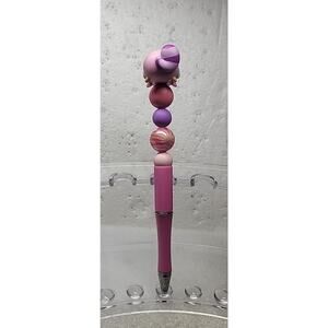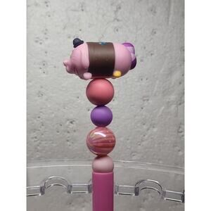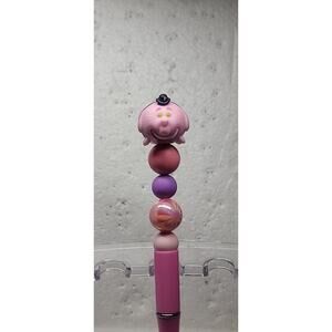 This Disney Doorables beaded pen features a playful character named Bing Bong from the popular Disney movie Inside Out. The pen is made of plastic and comes in a multicolor design with black ink. It is a handmade item and was crafted with care in the United States. With its unique design and fun features, this pen is perfect for collectors of Disney merchandise or fans of the Inside Out movie. It is not personalized and is not a vintage item. Use it to write down your thoughts and ideas or simply enjoy it as a decorative piece in your collection.