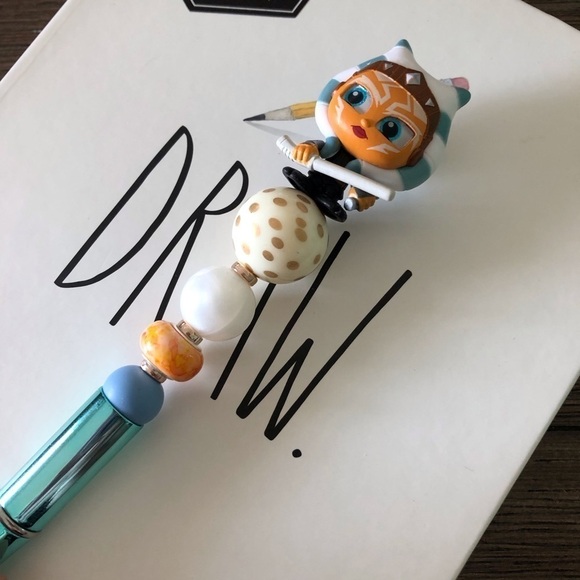 Disney Doorables: Star Wars: Ahsoka Tano handmade beaded pen. Black ink, and refillable to any color.