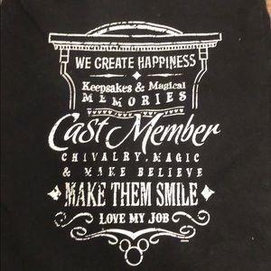 Authentic Disney Cast Member drawstring backpack from when I worked at Disney World. Perfect gift for the Disney lover in your life!! Black with grey adjustable straps and grey drawstring cord. Zip pocket on the back. 10” wide and 15” tall.