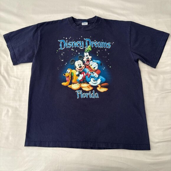 Disney Dreams Florida navy t-shirt. Mickey, Donald, Goofy and Pluto! Size XL. Measurements in photos. Thanks for looking!! #disneyland #florida #goofy #donaldduck #mickeymouse