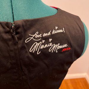 ''Love and kisses, Minnie Mouse xoxo'' embroidered on back of bodice