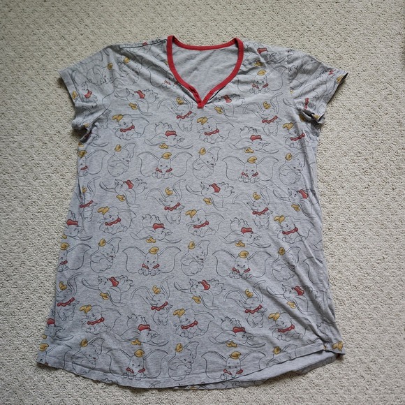 Disney Dumbo All Over Print Grey V Neck Sleep Shirt Nightgown Women's XL/2XL