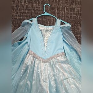 Elsa Frozen Disney Store Limited Edition Costume. Child Size 8. Lights work in back cape that is removable by buttons on the back of dress. Original dress bag with original tags.
