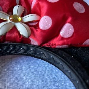 Get ready for your Disney trip with these Minnie ears. Ears were given to my daughter as a birthday gift when she was younger. Have been in storage. Glue is visible where the bow sits on the back but not noticeable when on. Seam on front of bow on the bottom right is fine but looks like the strings are loose. Right ear in back has some detachment from the headband due to bumping into the car ceilings at Disney. Headband is still intact.