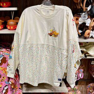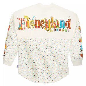 This Spirit Jersey from The Happiest Place on Earth provides plenty of food for thought. A smorgasbord of delicious delights are featured on the sleeves, and cleverly incorporated into the ''Disneyland Resort'' puff ink lettering across the back shoulders. A Mickey ice cream bar, churros, and pineapple swirl are among the array of treats while the rest of this cotton top is covered in colourful sprinkles.