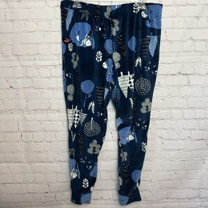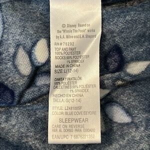 Long sleeve crew neck fleece top. Matching Jogger style pants with elastic waistband. Navy Eeyore forest print.