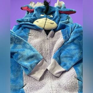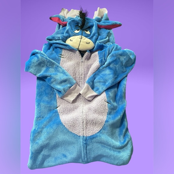 Soft Disney Eeyore onesie. Ideal for comfort and relaxation, or as a costume.