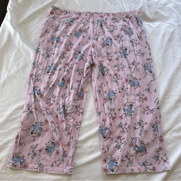 Disney Eeyore Pink Floral White Lace Trim Capri Pajama Pants