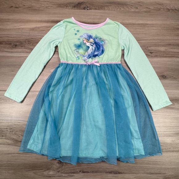 Disney Elsa Frozen Princess Long Sleeve Dress Girls Size 7/8 Blue Sparkle Tulle
