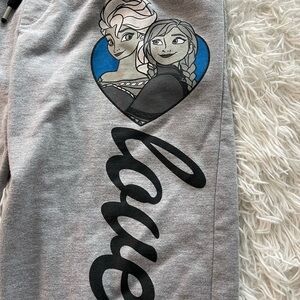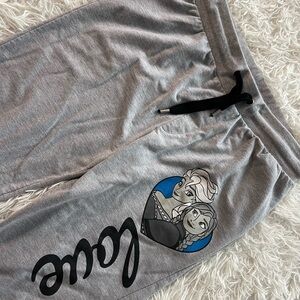 Great condition Disney Frozen Sweatpants joggers with Elsa and Anna picture and love lettering