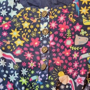 Disney Encanto Floral Baby Girl Long Sleeve Dress Size 2, buttons down the front and at the wrist, zipper closure down the back, elastic waist, in excellent pre-owed condition.