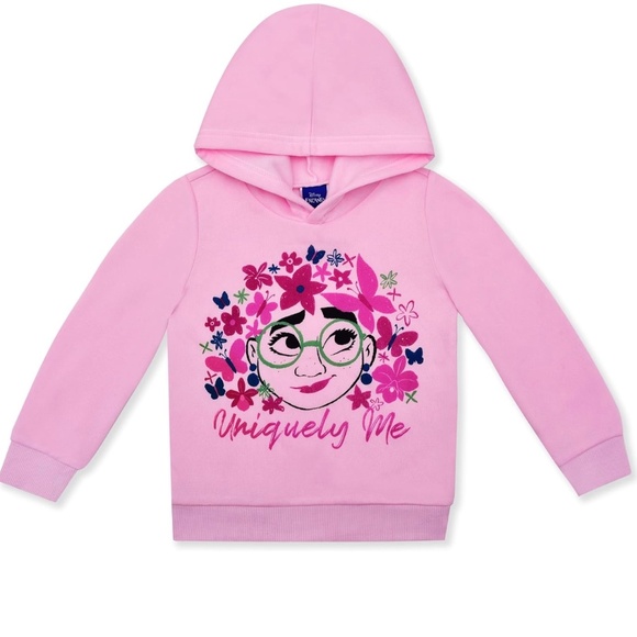 Contains One Cozy Pink Encanto’s Mirabel “Uniquely Me” Print Hoodie and One Cute Matching Grey All Over Print Jogger