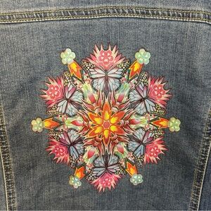 Disney Encanto Girls Denim Jean Jacket, Size L (10/12), Floral Butterflies Print