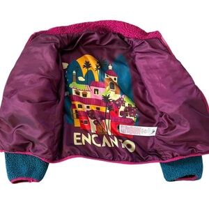 Disney Encanto Pink and Blue Puffer Jacket with Color Blocking and High Collar