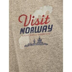 Disney Epcot Norway World Showcase Visit/Ski Norway Mickey/Minnie Mouse T Shirt. 90% Cotton 10% Polyester. Laid flat measures approximately 26" armpit to armpit and 31" long from top of shoulder to bottom hem. Very small hole in both armpits on seam, it may be a manufacturer's defect since it is in the same place, pointed out in pictures.