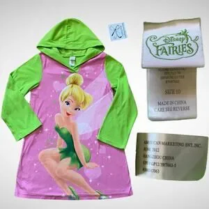 Disney Fairies Tinker Bell 2012 Hooded Pajama Sleep Nightgown Dress Kids Sz 10