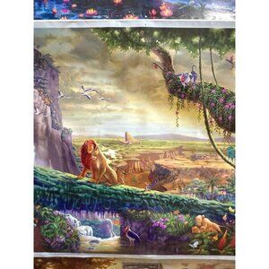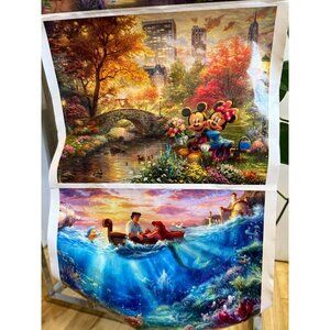 Set of four unframed prints featuring beloved Disney scenes in a vibrant, painterly style. Designs include Cinderella at the castle, The Lion King on Pride Rock, Mickey & Minnie in a colorful park, and Ariel with Prince Eric at sea. Perfect for framing and adding a touch of Disney magic to any space.