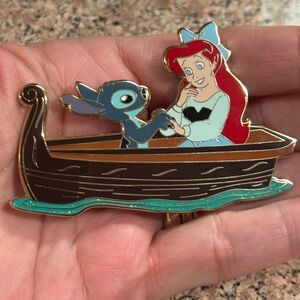 Disney Fantasy Pin - JUMBO Disney Stitch Holding Hands with Ariel in Boat Kiss Scene LE100