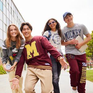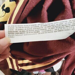 Show off your love for Mickey Mouse with this Disney Fashion Collection sweatshirt. The varsity jersey design features an embroidered M on the chest, making it a perfect addition to any Disneyana collection. The unisex sweatshirt is suitable for adults and comes in a vibrant red, yellow, and black color combination. Made in China, this sweatshirt is of high quality and is perfect for any Disney fan. The size is L and it is suitable for both men and women. Add this Disney Fashion Collection sweatshirt to your wardrobe today and show off your love for Mickey Mouse in style.