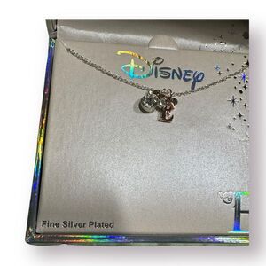Disney Fine Silver Plated Necklace letter “E” with Crystal Mickey Charm Rare