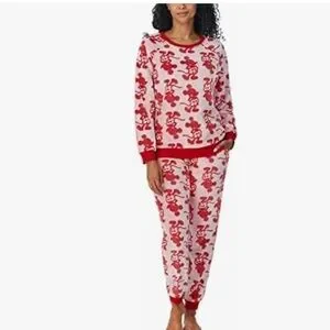 Disney Fleece Mickey Mouse Pajama Set Top Pants Red Cream Medium