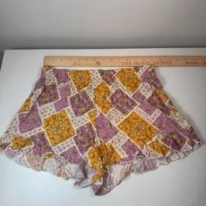 Keywords: patchwork shorts, floral shorts, ruffle hem shorts, elastic waist shorts, boho shorts, casual shorts, summer shorts, printed shorts, comfy shorts, cute shorts, festival shorts