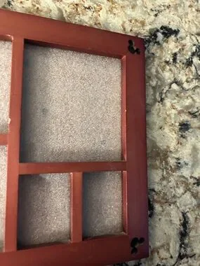 Stylish red multi-opening photo frame built for showcasing several photos. The red finish adds warm, classic color to your decor. Lightweight and ready to display your favorite memories. Simple, versatile design complements a variety of room styles. There are a few chips as noted in pictures.