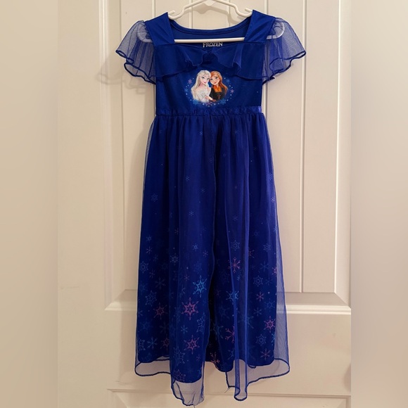 Enchanting blue nightgown featuring beloved Frozen characters. Soft and comfortable fabric. Perfect for bedtime adventures.