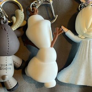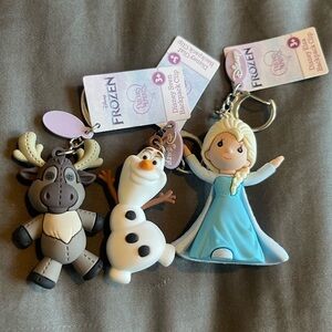 Bring the magic of Disney's Frozen to life with this charming keychain/Backpack Clip set. Featuring beloved characters: Elsa, Sven, and Olaf, these keychains are perfect for fans of all ages. Never used, tags still attached.