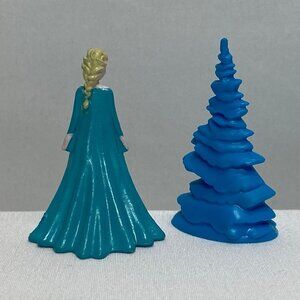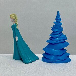 Disney Frozen Elsa 2" PVC Toy Figurine & Froze Blue Tree Cake Topper Rare HTF