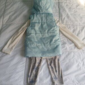 Pre-owned Disney Frozen Elsa 3 piece outfit set long sleeve shirt/pants/ puffer vest still in good condition