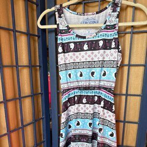 Disney Frozen Elsa Anna Girls Dress Blue Black Print Size S
