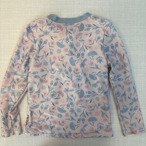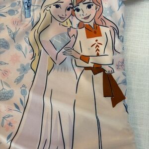 Disney Frozen long-sleeve rash guard swim shirt featuring Elsa & Anna. Pretty pastel floral print with half-zip front. Very good pre-owned condition; small mark on back neckline (see photos prior to your purchase).