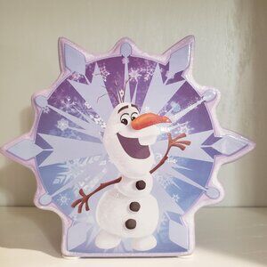 A very pretty 8"x7"soft lavender ceramic Disney Elsa and Anna on one side and Olaf the snowman on the other side. Snowflake shaped coin bank has a pretty iridescent sparkling outline on both sides of the bank. Like new condition. No chips or cracks. Has a removable rubber stopper on bottom of bank. Non smoking pet free home. ERC#6