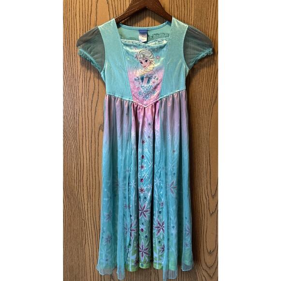 Disney Frozen Elsa Dress Girl’s M Teal Aqua Princess Costume Nightgown Sleepwear