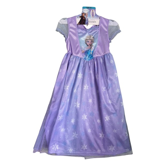 Disney Frozen Elsa Fantasy Gown Girls Purple Snowflake Pajamas Size 4T NEW