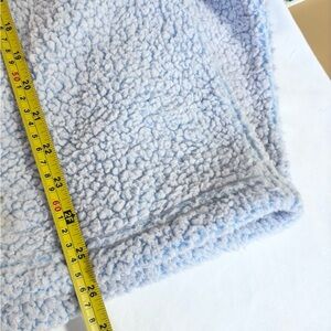 Soft and cozy faux fur sleepwear. Features a light blue color. Perfect for relaxing at home.