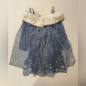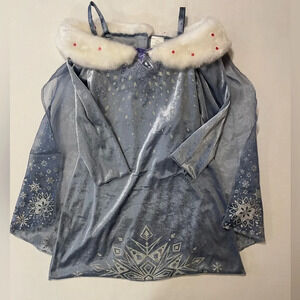 Adorable long sleeve Elsa blue gown with cape and faux fur collar. Perfect for dress-up or Halloween. Plays “When We’re Together”. Gently worn with normal wear (no rips or stains).