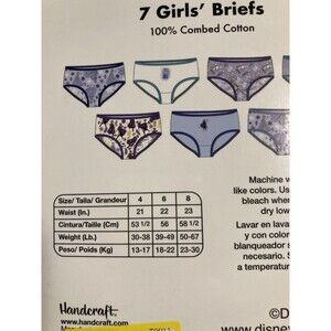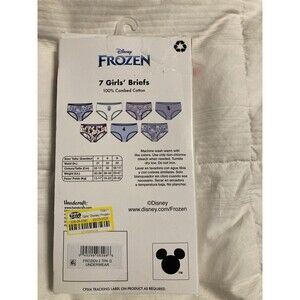 Get your little girl ready for the magic of Disney with these Frozen panties! This 7-pack of girls' size 4 underwear features her favorite characters from the popular movie. Made of 100% cotton, these briefs are soft and comfortable for all-day wear. The colorful prints of Anna, Elsa, and Olaf will make your little girl excited to wear them. Machine washable for easy care, these panties are perfect for any girl who loves Disney's Frozen.
