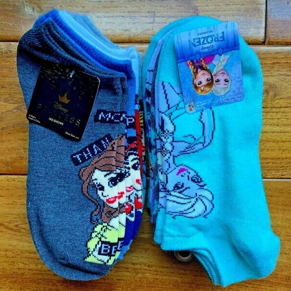 Disney Princess 6 pair sock lot - Belle~Snow White~Ariel~Mulan~Cinderella~Rapunzel