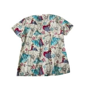 Add a touch of Disney magic to your workday with this adorable "Frozen" nurse scrub top! In excellent condition, this top features a fun "Frozen" print that will brighten the day of pediatric patients and colleagues alike.