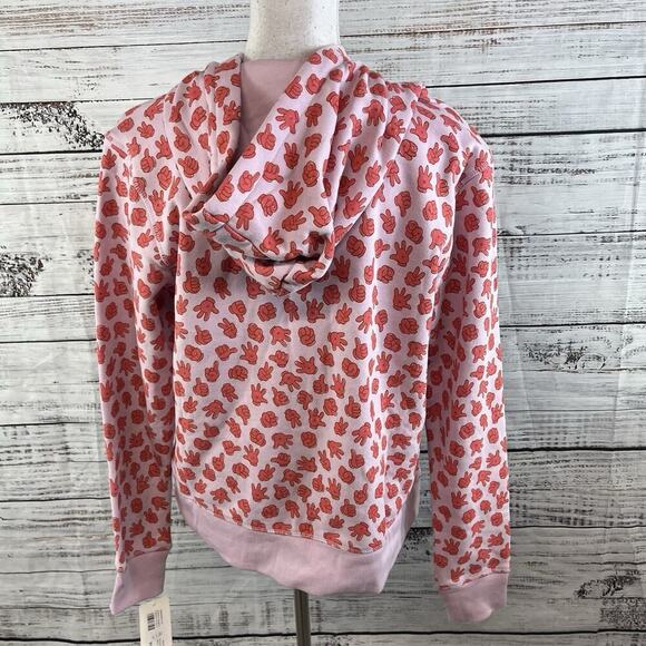 Disney Full Zip Hoodie Jacket size Medium Purple Red Mickey Mouse Hands Fleece
