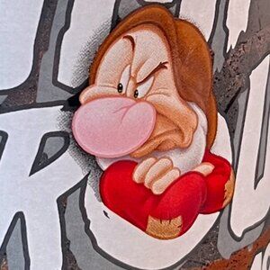 Striking Disney glossy, gray ceramic mug features 2 different images of the character Grumpy from the Walt Disney film, Snow White and the Seven Dwarfs. One side features a full color graphic of Grumpy’s face, while the other side shows large stylized text that reads, GRUMPY AND PROUD SINCE 1937, with a sneering, arms crossed image of Grumping poking out of the letter O in the word PROUD. Gray interior. Large and comfortable handle. Dishwasher and microwave safe. Measures 4.5” tall with a 3.25” diameter. 5.5” across including handle. Holds 16 fluid oz. From Jerry Leigh; Orlando, Florida.