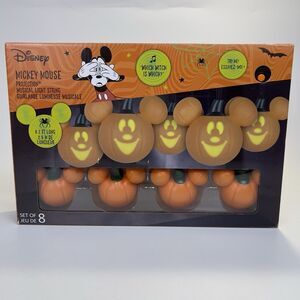 Disney Gemmy Halloween String Lights Mickey Pumpkin Singing Projection moving mouths sings which witch is witchy unused