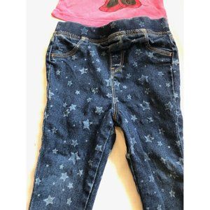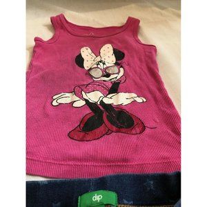 Disney Girls 2 Pieces Top Tank Pink Leggings Jeans Blue Elastic Waist 18-24M