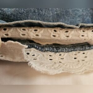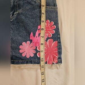 Disney Girls Blue Denim Jean Skirt With Built In Shorts White Lace Trim, Split in Lace, pictured Size 6 measurements pictured