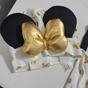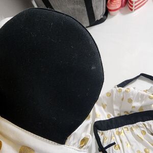 Disney Girls Chef Cooking Baking Apron & Minnie Mouse Ears Hat Set Gold Metallic
