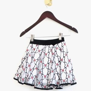 Description: This is a genuine Girls' Disney Minnie Mouse Tulle Skirt. No rips, tears, marks, stains, flaws or defects. The skirt features pullover style, A-line silhouette, elastic at waist, embroidered Minnie Mouse bows design, satin hem, attached shorts under skirt, soft nylon and polyester blend fabric, machine washable. Retail $60