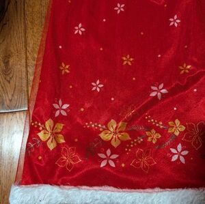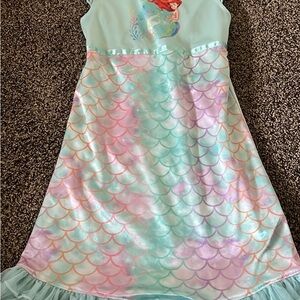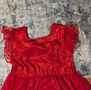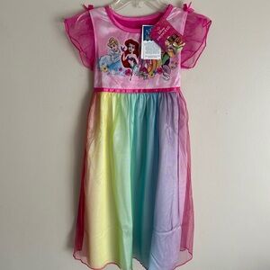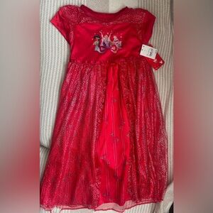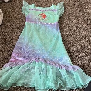 Super cute nightgown for a little girl that could also be used as a dress. Top is like a crushed velvet with sheer cap sleeves. Bottom has a satiny skirt with a sheer overlay and white faux fur trim. From non-smoking home.