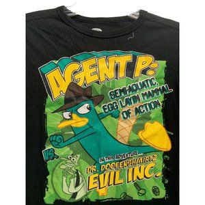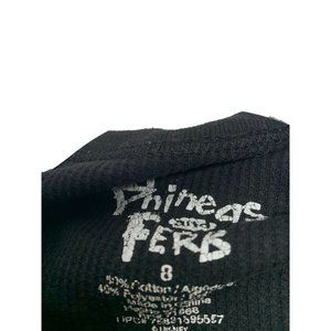 Disney Girls Size 8 Phineas and Ferb Waffle Knit Thermal Top Shirt Black with G
